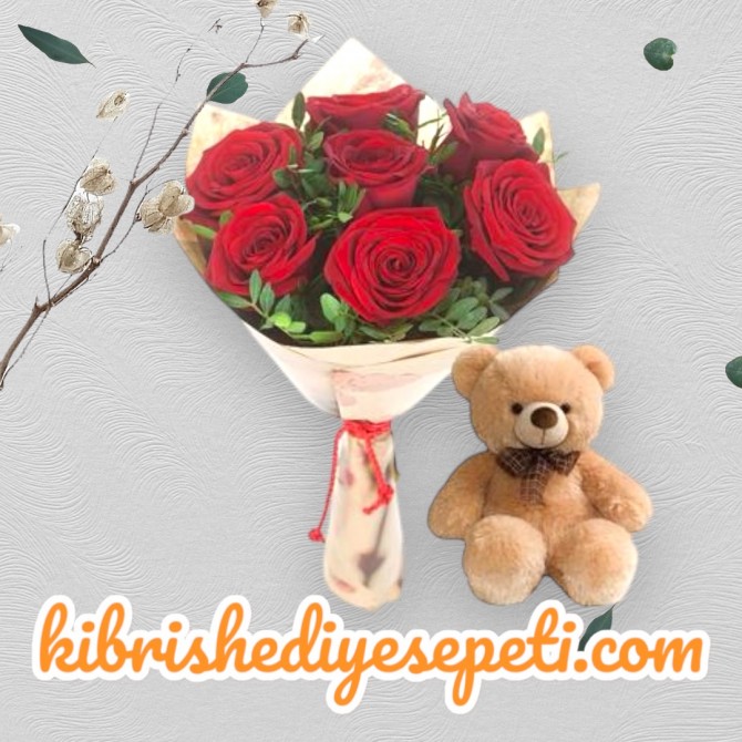 7 Kırmızı Gül Buketi ve Ayıcık